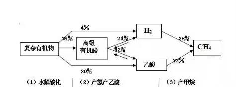 理論研究認為三個階段,即厭氧消化過程分為水解發(fā)酵階段、產(chǎn)乙酸產(chǎn)氫階段、產(chǎn)甲烷階段三部分。