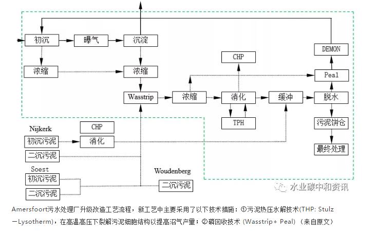 2015年建成12個(gè)能源工廠。在此方面,荷蘭已經(jīng)取得一些積極成果,一些污水處理廠利用污泥厭氧消化產(chǎn)ch4,ch4熱電聯(lián)產(chǎn)(chp)發(fā)電/產(chǎn)熱反哺污水處理廠運(yùn)行或供應(yīng)社會(huì)。dokhaven 污水處理廠主流工藝采用ab法,a、b兩段剩余污泥以不同脫水方式脫水再進(jìn)入后續(xù)消化池厭氧消化產(chǎn)ch4,并用于chp發(fā)電和產(chǎn)熱:電用于污水處理廠運(yùn)行,余熱用于消化系統(tǒng)加熱和冬季辦公室取暖等。apeldoorn污水處理廠引入?yún)捬豕蚕夹g(shù)同步處理剩余污泥和廚余垃圾,同時(shí)對污泥厭氧消化液采用側(cè)流自養(yǎng)脫氮(demon)工藝處理,以減少碳源消耗,增加更多剩余污泥量供厭氧消化轉(zhuǎn)化沼氣后用于chp發(fā)電。garmerwolde污水處理廠采用ab法中的a段將cod作為污泥(生物吸附)分離,并利用2個(gè)連續(xù)厭氧消化池處理這些污泥以及臨近的污水處理廠的剩余污泥。消化污泥脫水上清液采用節(jié)能型中溫亞硝化sharon工藝處理,沼氣chp發(fā)電可以滿足60%~70%的運(yùn)行能耗,余熱則用于加熱消化池。阿姆斯特丹西區(qū)(amsterdamwest)污水處理廠目前是荷蘭最大的污水處理廠之一,該廠采用傳統(tǒng)污泥消化工藝。沼氣和消化后污泥送至附近垃圾焚燒廠使用和最終處置并生產(chǎn)能量。