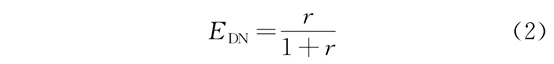 生物池內(nèi)回流比大小直接決定脫氮效率。在假設(shè)生物硝化及反硝化效率均為100%的前提下,脫氮效率隨著內(nèi)回流比的增大而增大,脫氮效率edn計(jì)算見(jiàn)式(2):