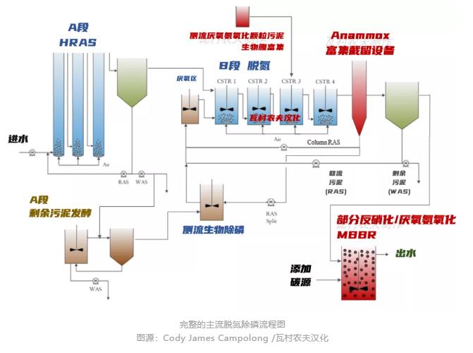 到了2019年,他們在另一座污水廠——約克河污水廠進(jìn)行測試,將它的一個(gè)后置反硝化濾池改造成一個(gè)基于mbbr移動床生物膜反應(yīng)器工藝的pdn/a反應(yīng)系統(tǒng)。在他們看來,這算是第一個(gè)完成主流anammox菌氧化進(jìn)水氨氮的案例,并取得了成功的結(jié)果,因此hrsd計(jì)劃將此工藝技術(shù)納入即將在詹姆斯河污水廠(james river wwtp)開展的脫氮除磷升級改造工程中。這次百萬美元的研究項(xiàng)目就是要解決pdn/a工藝在設(shè)計(jì)和運(yùn)行方面剩下的一些未知問題。