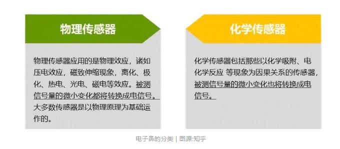 sniffdrone,顧名思義,就是一臺(tái)會(huì)辨識(shí)氣味的無(wú)人機(jī)。為了幫助讀者了解這個(gè)技術(shù)的原理,小編找到了知乎上的一篇文章《電子鼻的原理是什么啊,能識(shí)別氣味?》給大家參考。如下圖所示,所謂的電子鼻就是各種傳感器,其中又分為了物理傳感器和化學(xué)傳感器。