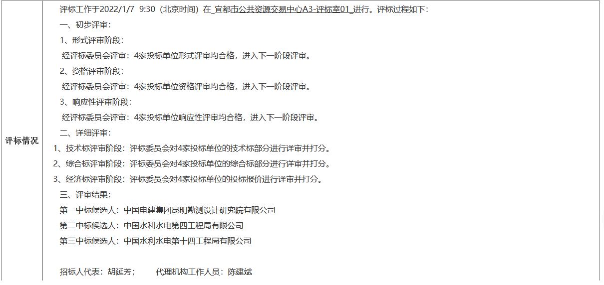 長(zhǎng)江宜都段生態(tài)保護(hù)與綠色發(fā)展eod項(xiàng)目(一期)于2021年12月7日在宜都市公共資源交易信息網(wǎng)發(fā)布招標(biāo)公告,2022年1月7日9時(shí)0分在宜都市公共資源交易中心開(kāi)標(biāo)、評(píng)標(biāo) ,根據(jù)評(píng)標(biāo)委員會(huì)提交的評(píng)標(biāo)報(bào)告,現(xiàn)將中標(biāo)候選人公示如下: