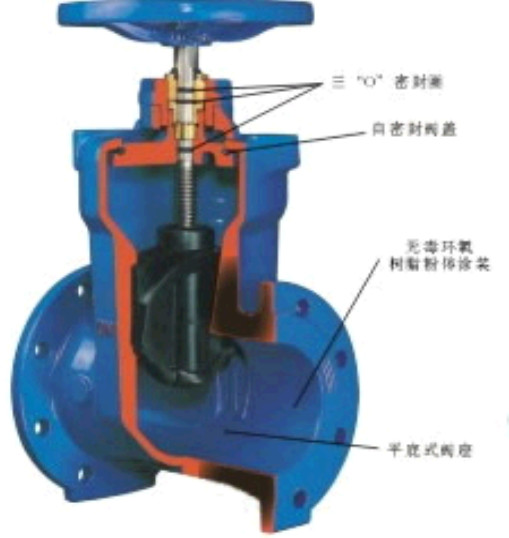 轉(zhuǎn)動手輪,通過手輪與閥桿的螺紋的進、退,提升或下降與閥桿連接的閥板,達到開啟和關(guān)閉的作用。
