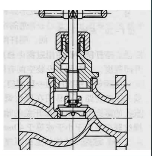 4、 截止閥閥體的結(jié)構(gòu)形式有直通式、直流式和直角式。直通式是最常見的結(jié)構(gòu),但其流體的阻力最大。直流式流體阻力較小,多用于含固體顆?;蛘扯却蟮牧黧w。直角式閥體多采用鍛造,適用于較小通經(jīng)、較高壓力的的截止閥。
