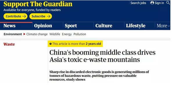 早在2年前,英國(guó)《衛(wèi)報(bào)》曾刊登了一篇標(biāo)題為“中國(guó)興盛的中產(chǎn)階級(jí)正在導(dǎo)致亞洲的有害電子垃圾堆積如山”的文章,稱中國(guó)是導(dǎo)致亞洲有害電子垃圾快速增長(zhǎng)的主要因素。還宣稱,由于電子設(shè)備的生產(chǎn)本身就會(huì)對(duì)環(huán)境資源有很大的消耗,所以回收這些電子垃圾非常重要。但由于缺乏有效的環(huán)境管理政策,缺乏對(duì)電子材料的回收,電子垃圾所帶來(lái)的問(wèn)題變得越來(lái)越嚴(yán)峻。