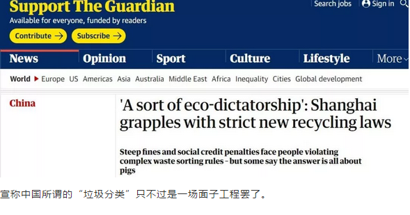 如今中國(guó)已經(jīng)響應(yīng)了世界的要求,進(jìn)行了國(guó)史上第一次垃圾分類舉措。然而,那個(gè)2年前說(shuō)咱們中國(guó)垃圾太多,要求我們搞垃圾分類的英國(guó)《衛(wèi)報(bào)》此時(shí)又跳了出來(lái),這次他們卻拿出了另外一副面孔,在一篇最新的報(bào)道中開(kāi)始指控我們嚴(yán)格的垃圾分類制度是“環(huán)保獨(dú)裁”。